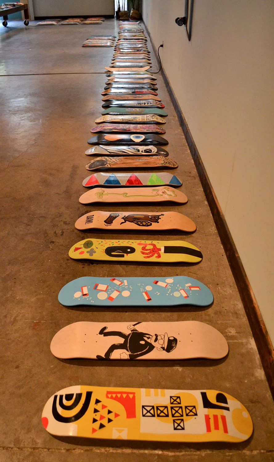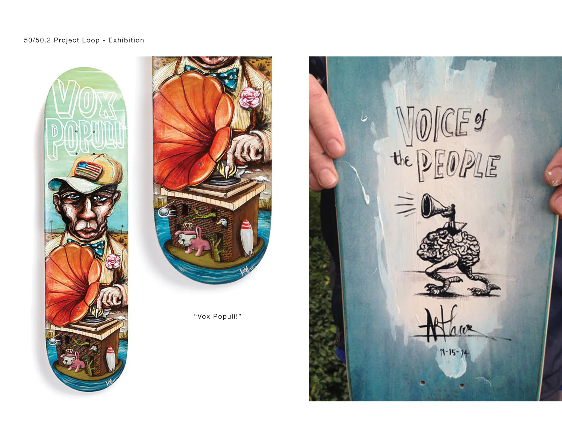 Project Loop is a non-profit artistic supernova network of creative professionals set up for the purpose of enriching creativity, artistry, hard work and enterprise. I participated in a series of Skate Deck Gallery Shows and Auctions to help raise money for one of the project’s goals of building a state-of-the-art skate park in Taylor, Texas. The 50/50 Show series was a collection of artists from all disciplines creating one-of-a-kind skate decks that were put up for auction as the skate park fundraiser.