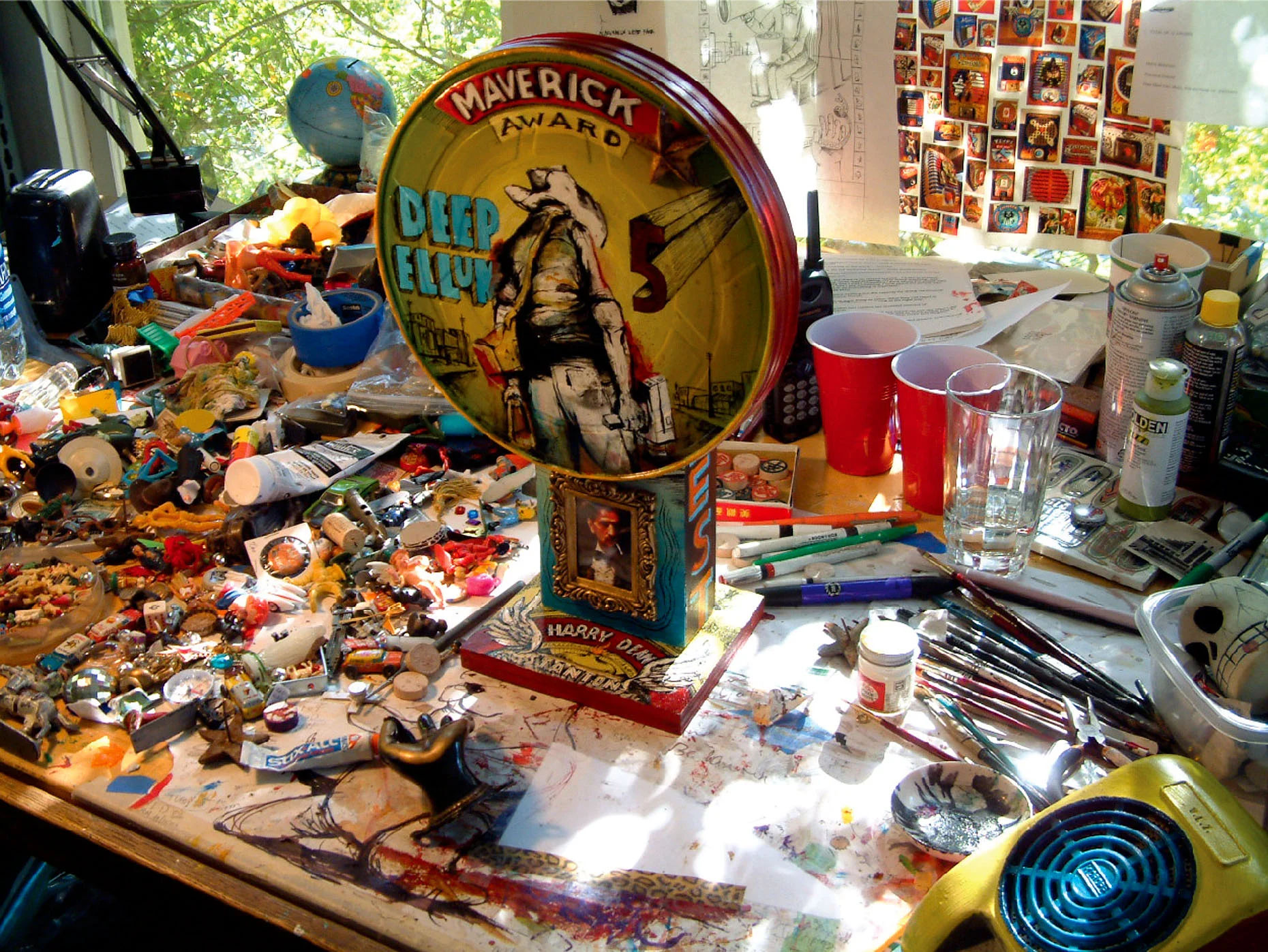 I consider multifarious projects to be those that are out of the norm, but often times the most enjoyable, or ones that made me grow as an artist in the process. These projects cross over from traditional illustration within various marketing realms, all the way to special gifts, and to gallery projects. A great many of them in some way included 3 dimensional construction or installation. From painted guitars, to detailed dioramas, 3D collage to painted munnies, each unique project teaches me something new.